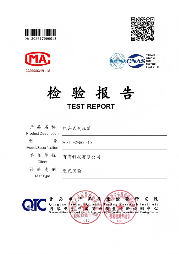 ZGS组合变压器顺利取得型式试验报告